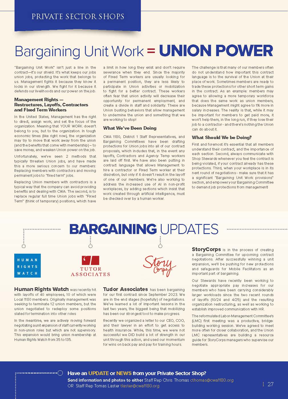 Follow CWA Local 1180 Private Sector Shops